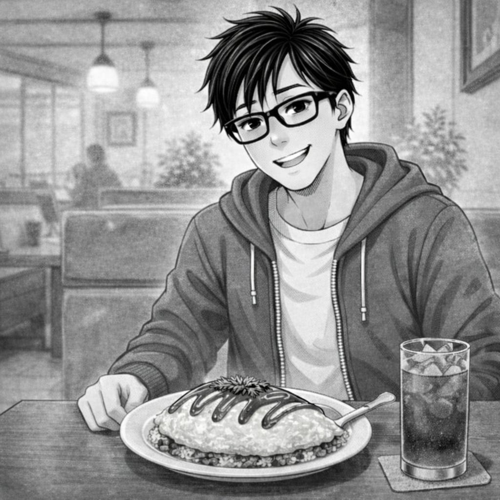 My heart was still racing when the tea arrived. But when the omuraisu came… soft egg folded over rice, glistening sauce, a sprig of parsley on top… something inside me softened. I took my first bite, smiled, and whispered to myself, おいしい. Delicious!